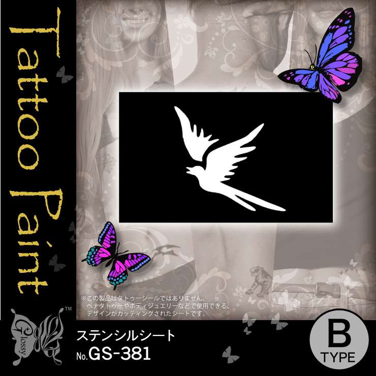 ステンシルシート 鳥 (GS-381) ヘナタトゥー ボディジュエリー ダイヤモンドタトゥー グリッター ステンシルプレート (ゆうパケット対応)