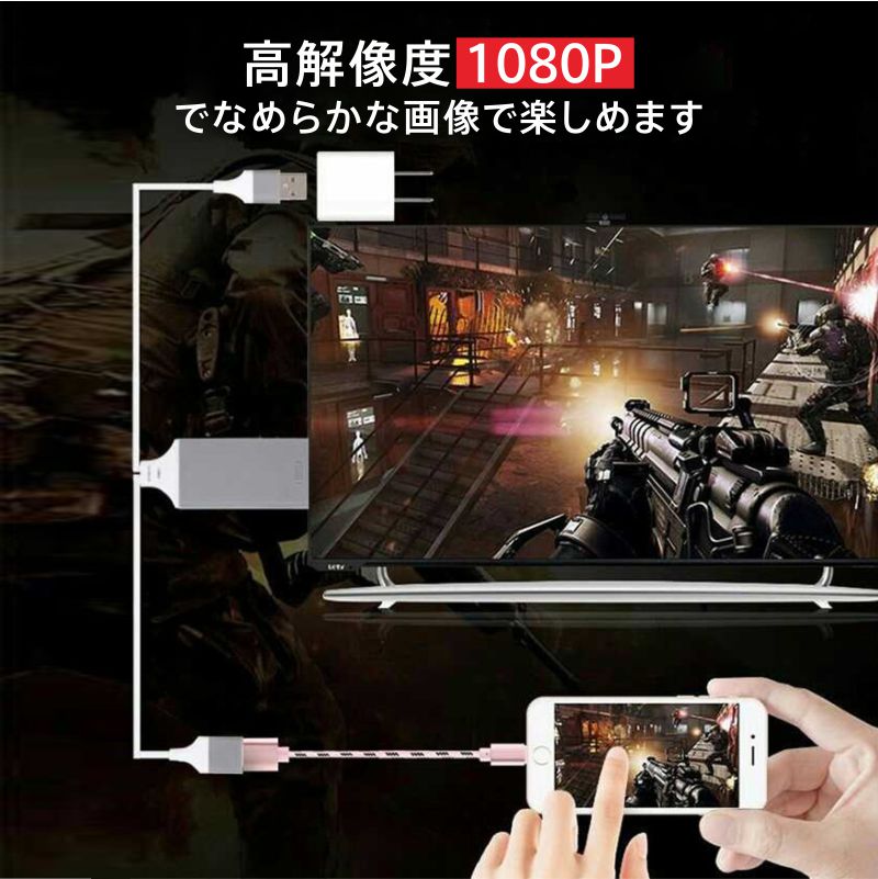 HDMIケーブル iPhone youtube テレビ 接続 ケーブル スマホ テレビ 接続 ケーブル HDMI変換 ケーブル iPhone iPad iPod HDMI 変換アダプター iPhone13 12 11 8 7 X XR SE iPad 対応 スマホ 高解像度 ゲーム TV 3色 送料無料 クリスマス