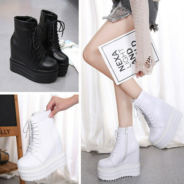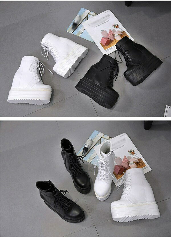 厚底 ブーツ レースアップ サイドジップ ショートブーツ 編み上げ ヒール 13cm インヒール 6cm 黒 白い靴 ブーティー ブラック ホワイト レディース シューズ ミドルブーツ 22.0/22.5/23.0/23.5/24.0/24.5 di046x1x1x1