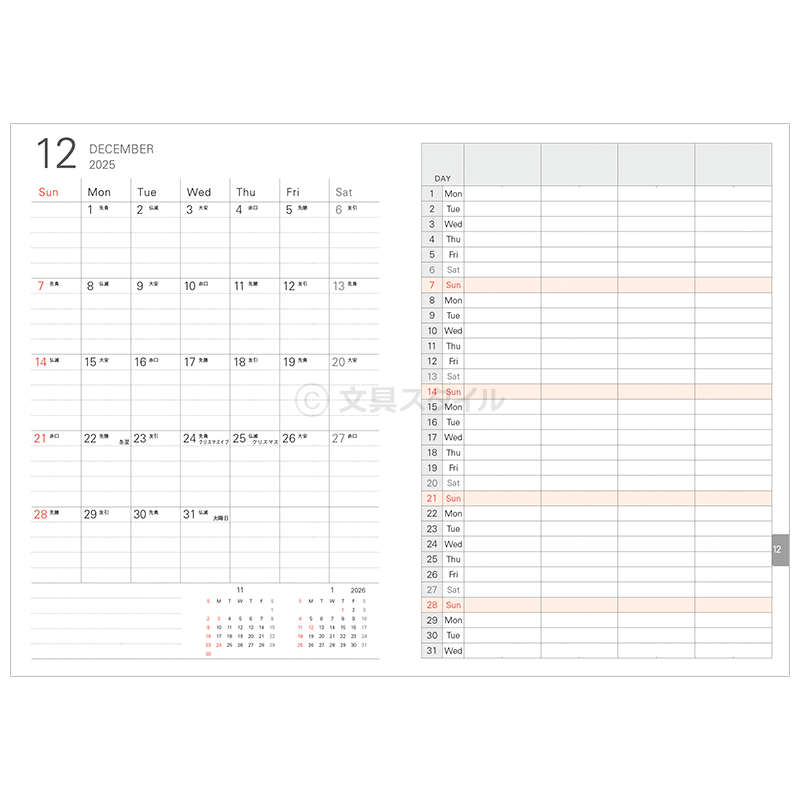商品番号 RFDR2367 仕様 ブロック式マンスリー(片面1ヶ月)4プランリスト式マンスリー(片面1ヶ月) 入数 16ヶ月分、2022年12月〜2024年3月 サイズ W128 × H182 × D3mm 本体重量 53g メーカー 株式会社レイメイ藤井 [NoteRefill][Date][Diary_SizeB6_Start12_Monthly_Block_Suday_4Plan]