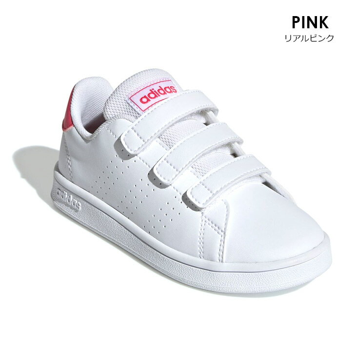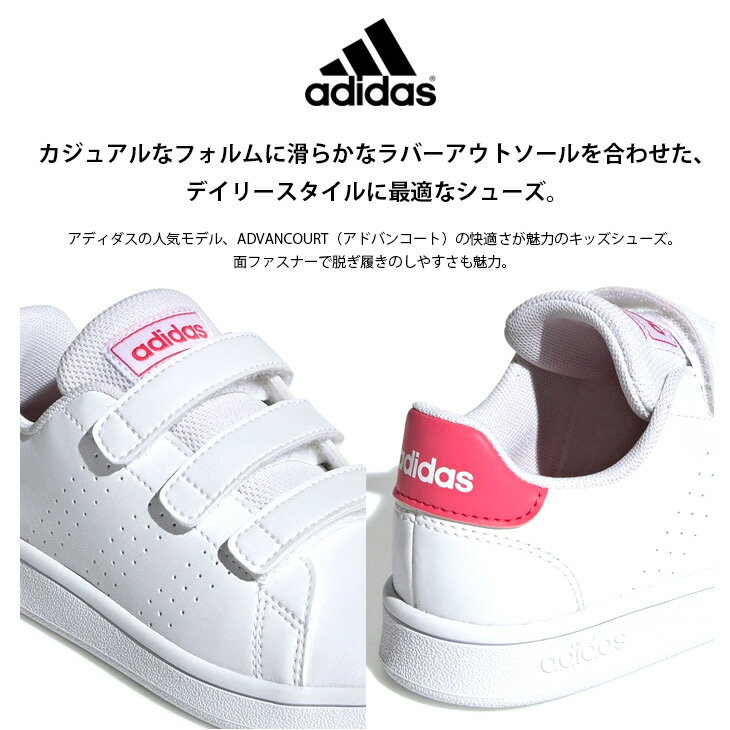 adidas ADVANCOURT C アディダス アドバンコート スニーカー 2.4センチヒール ホワイト ピンク グリーン 17.0 21.5 子供用 キッズ レザー ローカット ベルクロ テニスシューズ スポーツ マジックテープ 白 カジュアル