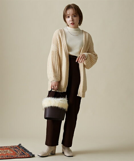 カーディガン 小さいサイズ レディース ローゲージ ニット 冬 アイボリー/モカ PS/PSS ニッセン nissen