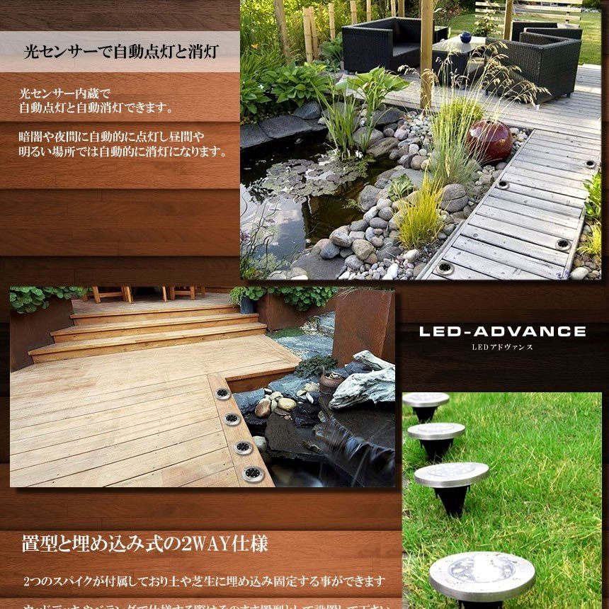 置型と埋め込み式の2WAY仕様 2つのスパイクが付属しており土や芝生に埋め込み固定する事ができます ウッドデッキやベランダで仕様する際はそのまま置型として設置して下さい 配線などないので綺麗に設置する事が可能です 防水仕様 屋外での設置も安心な防水仕様です。