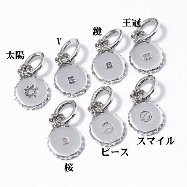 中心に「太陽、ピース、スマイル、鍵、王冠、桜、V」から選べる刻印を施しています。