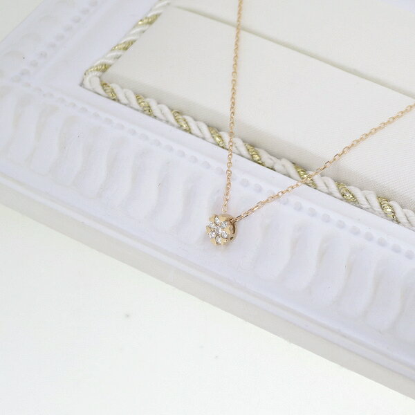 パヴェ ゴールドネックレス(チェーン付きペンダント) 花 花びら フラワー サークル リング 円 幾何学模様 ジオメトリー 18金 ピンクゴールド ダイヤモンド ダイアモンド ジュエリー ネックレス ペンダント 首飾り レディース 女性 アクセサリー ギフト プレゼント おしゃれ