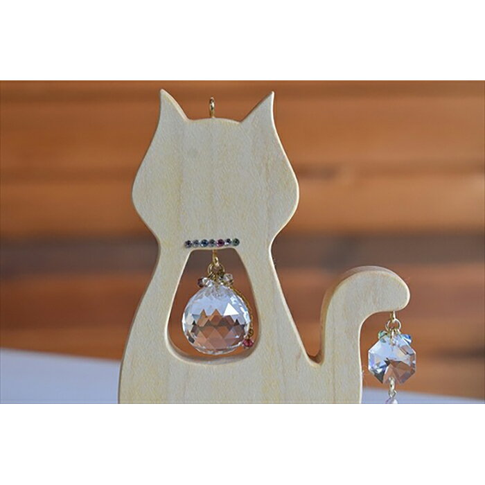 【ふるさと納税】【happybeans】猫のサンキャッチャー(ラブリーキャット) │ スワロフスキークリスタル 北欧 雑貨 風水 玄関 置物 スタンド インテリア 幸運 工芸品 贈り物 おしゃれ ギフト プレゼント 結婚祝い 出産祝い 父の日 母の日