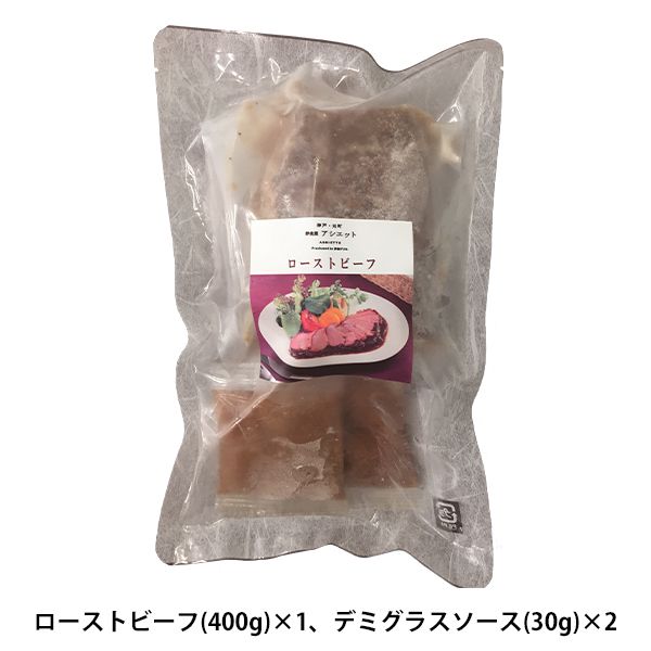 ●商品名/神戸・元町 アシエット ローストビーフ400g 7034000 ●商品内容/ローストビーフ(400g)×1、デミグラスソース(30g)×2 ●アレルゲン/小麦・乳 ●賞味期間/出荷日より30日 ●箱サイズ/約21×1.45×9cm ●配送方法/冷凍便 大正十二年創業の神戸の老舗洋食店「伊藤グリル」の姉妹店「アシエット」。