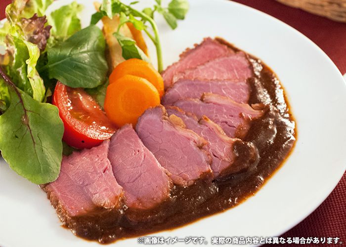 塩、胡椒のみの味付けで、じっくり低温で調理したローストビーフは、肉の旨みを逃がさずしっとりジューシーな食感。