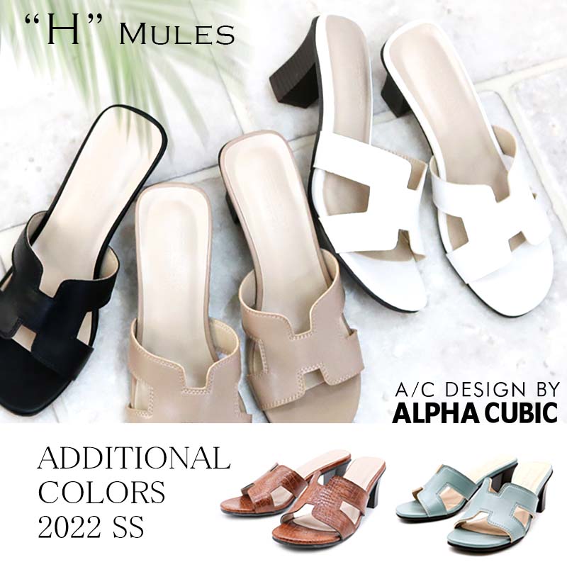 Hデザイン ステッチ 木目調 チャンキーヒール ミュール サンダル ALPHACUBIC アルファキュービック 靴 レディース ミュール 合皮 木目ヒール クッション 太ヒール Hミュール つっかけ san 人気