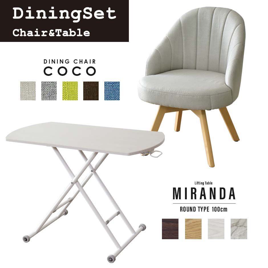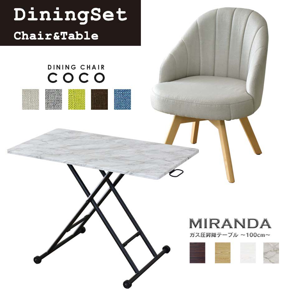 ダイニングセット チェア 昇降テーブル おしゃれ デザイナーズ 回転 ポケットコイル リビング ダイニングテーブル ガス圧 無段階 高さ調節 ココ ミランダ100