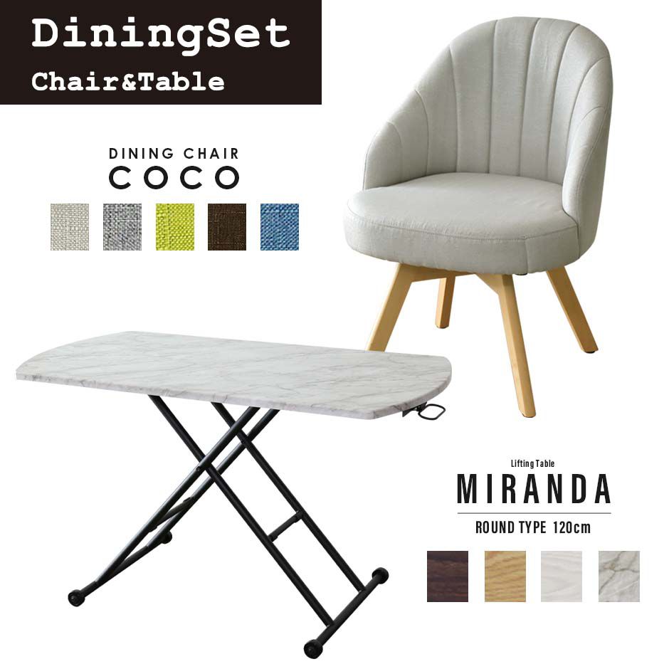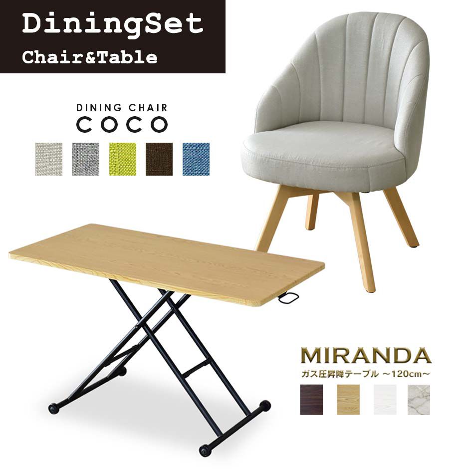 ダイニングセット チェア 昇降テーブル おしゃれ デザイナーズ 回転 ポケットコイル リビング ダイニングテーブル ガス圧 無段階 高さ調節 ココ ミランダ120