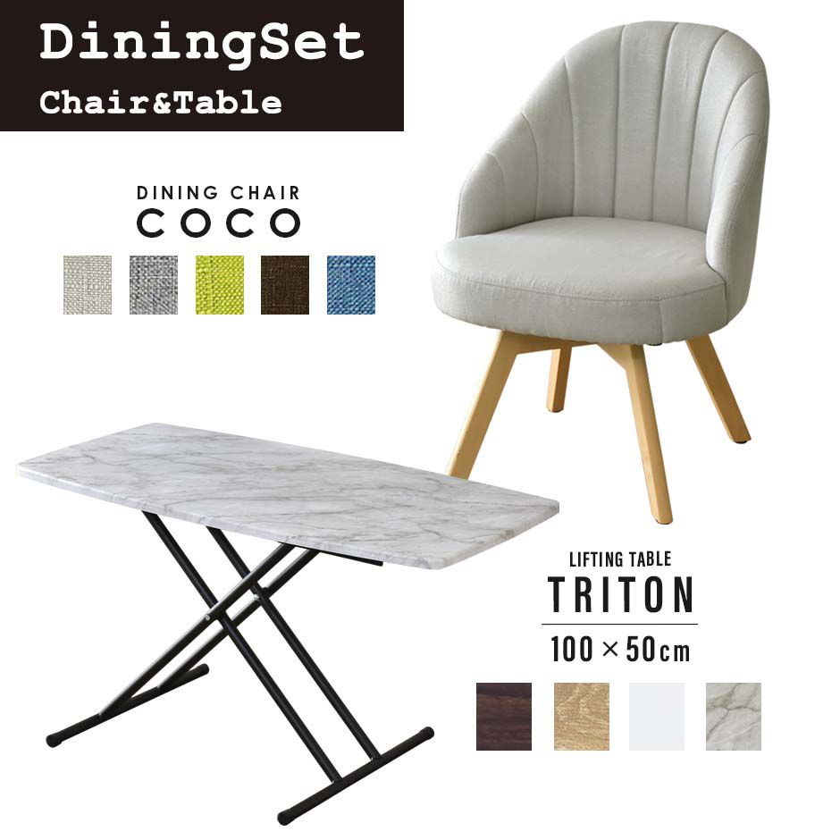 ダイニングセット チェア 昇降テーブル おしゃれ デザイナーズ ポケットコイル リビング ダイニングテーブル ローテーブル 昇降式 高さ調節 ココ トリトン100