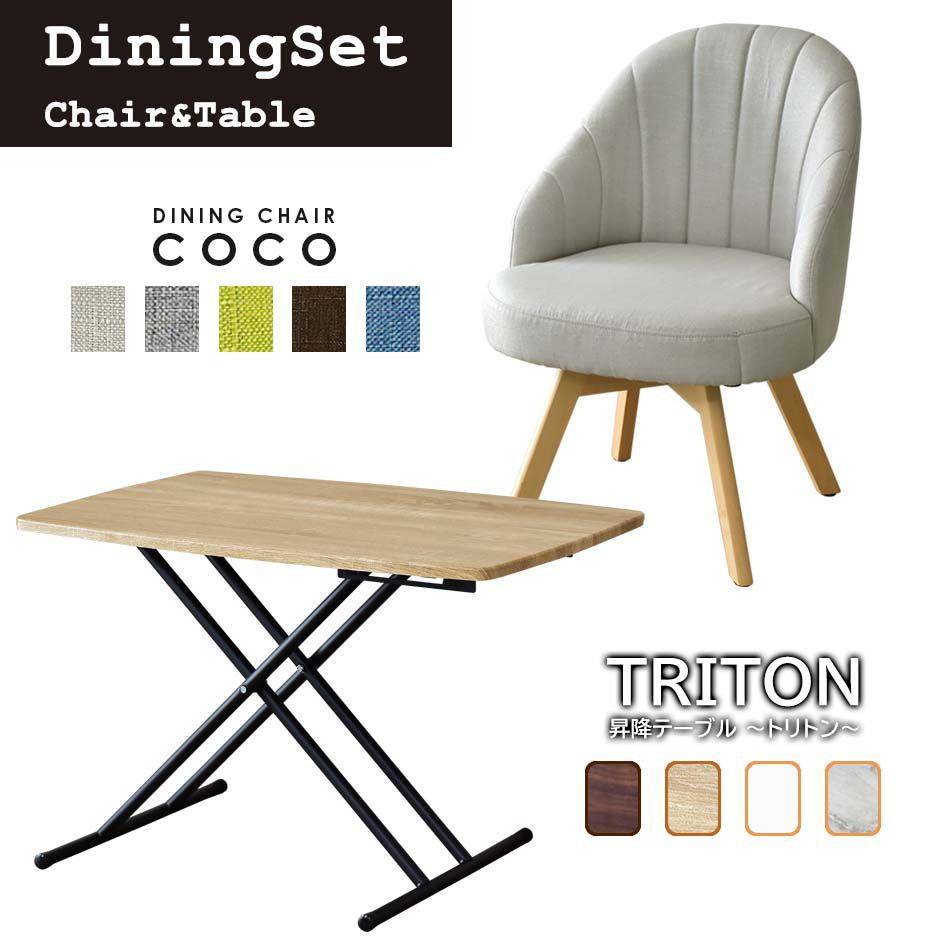 ダイニングセット チェア 昇降テーブル おしゃれ デザイナーズ ポケットコイル リビング ダイニングテーブル ローテーブル 昇降式 高さ調節 ココ トリトン85