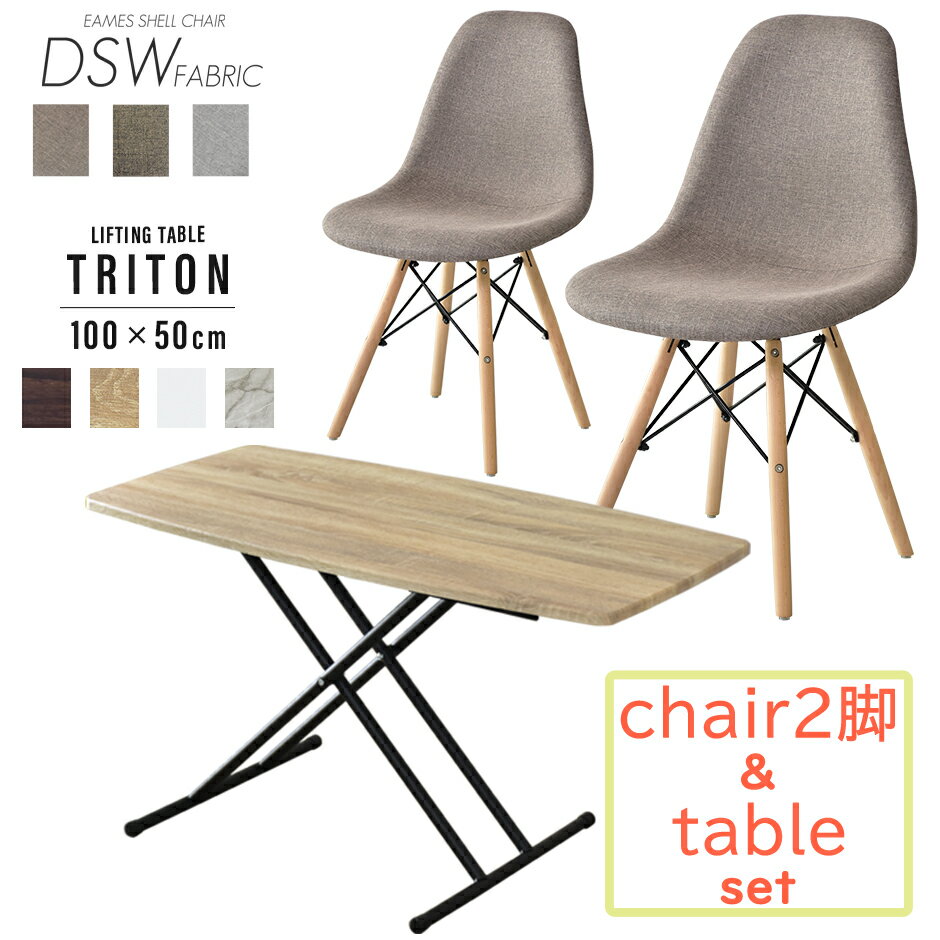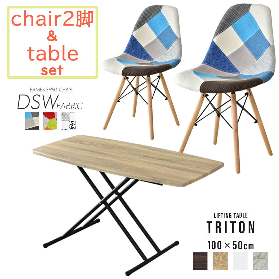 ダイニングセット チェア 昇降テーブル おしゃれ デザイナーズ リビング ダイニングテーブル ローテーブル 昇降式 高さ調節 イームズDSW-FAB トリトン100×50cm