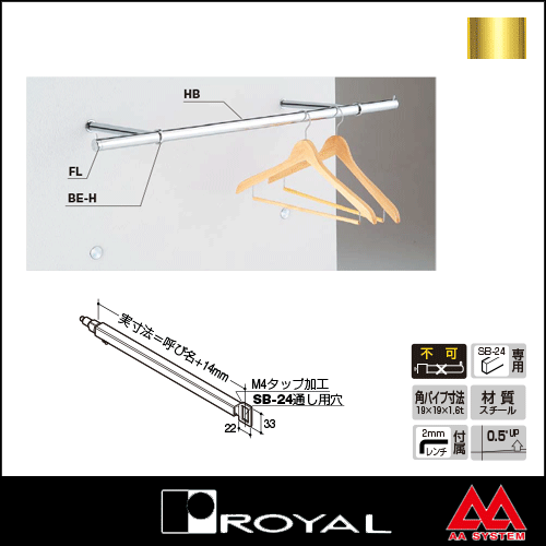 商品名 ロイヤル ベルラハンガー1919-24 BE-H-1919-24 200 APゴールド塗装 品番 ROYAL-BE-H-1919-24-200G サイズ 呼び名 200 ※実寸法 = 呼び名 + 14mm 角パイプ寸法 19mm x 19mm x 1.6t 角度 0.5°UP 対応ハンガー SB-24専用 材質 スチール製 表面 APゴールド塗装 付属品 2mmレンチが付属します 納期 約1週間ほど納期が必要です 返品・交換 こちらの商品は返品・交換が不可となります 備考 ・フェイスアウトハンガーのご使用は出来ません