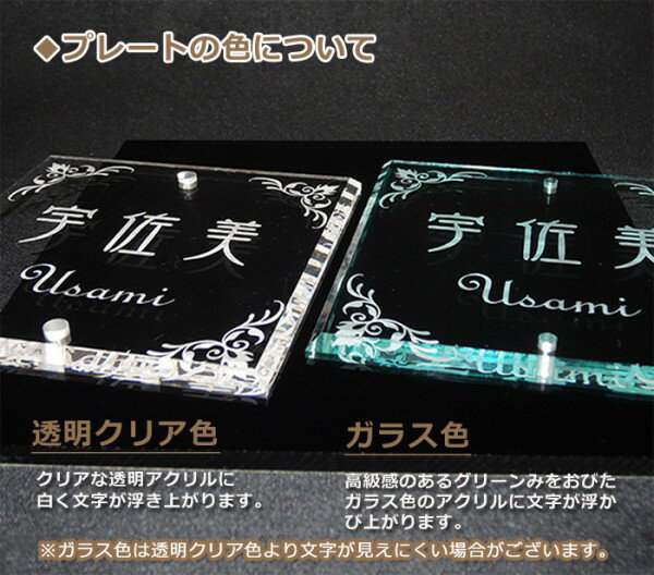 ガラス色アクリルは文字がグリーン色に浮かび上ります。
