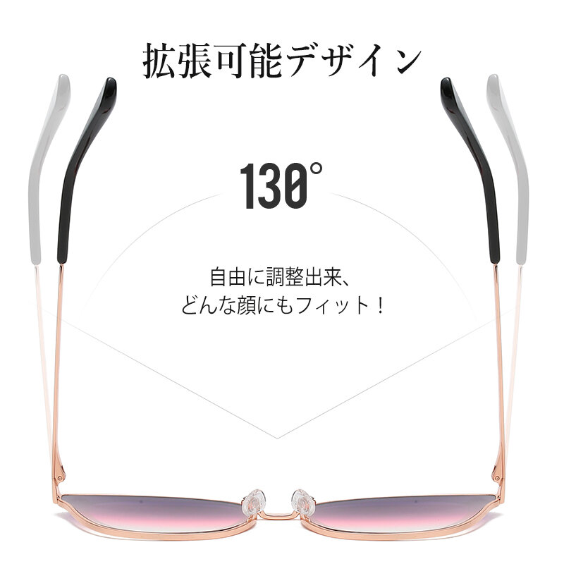 シンプルなデザインで、大人しさが演出、日頃様々なシーンに活用出来、大きいサイズのレディースサングラス、様々な顔にフィット♪