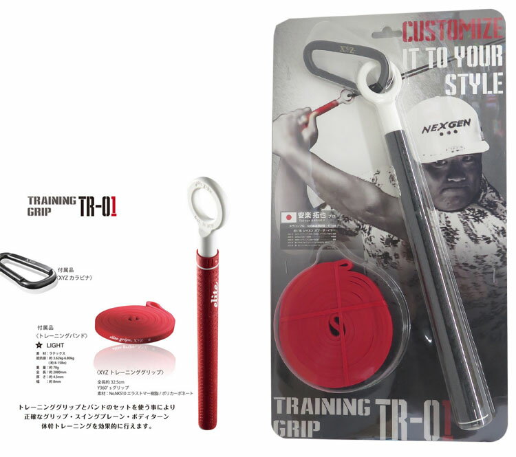 ■エリートグリップ XYZ トレーニンググリップ TR-01 ゴルフ体感トレーニング エリートグリップ XYZ トレーニンググリップ TR-01 ゴルフトレーニング トレーニンググリップとバンドのセットを使うことで、正確なグリップ・スイングプレーン・ボディターン 体幹トレーニングを効果的に行えるゴルフトレーニングツール。
